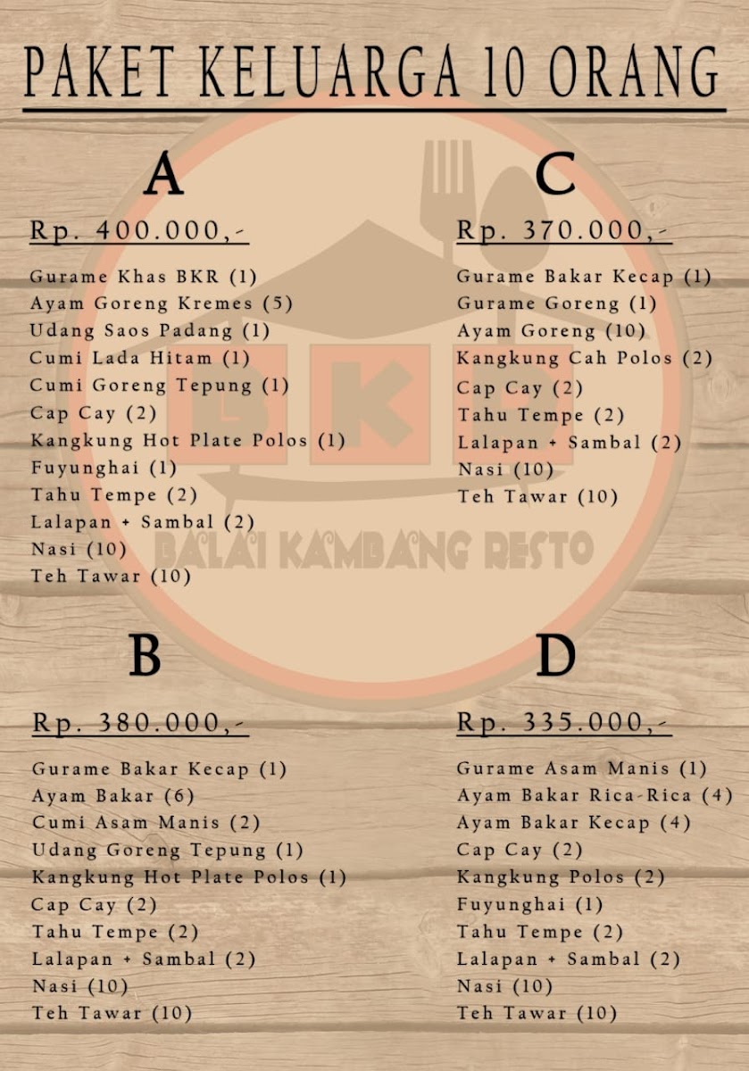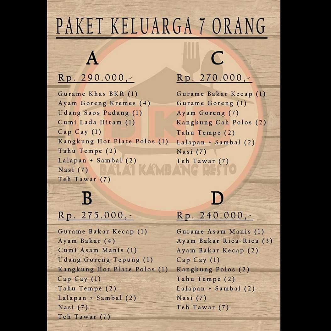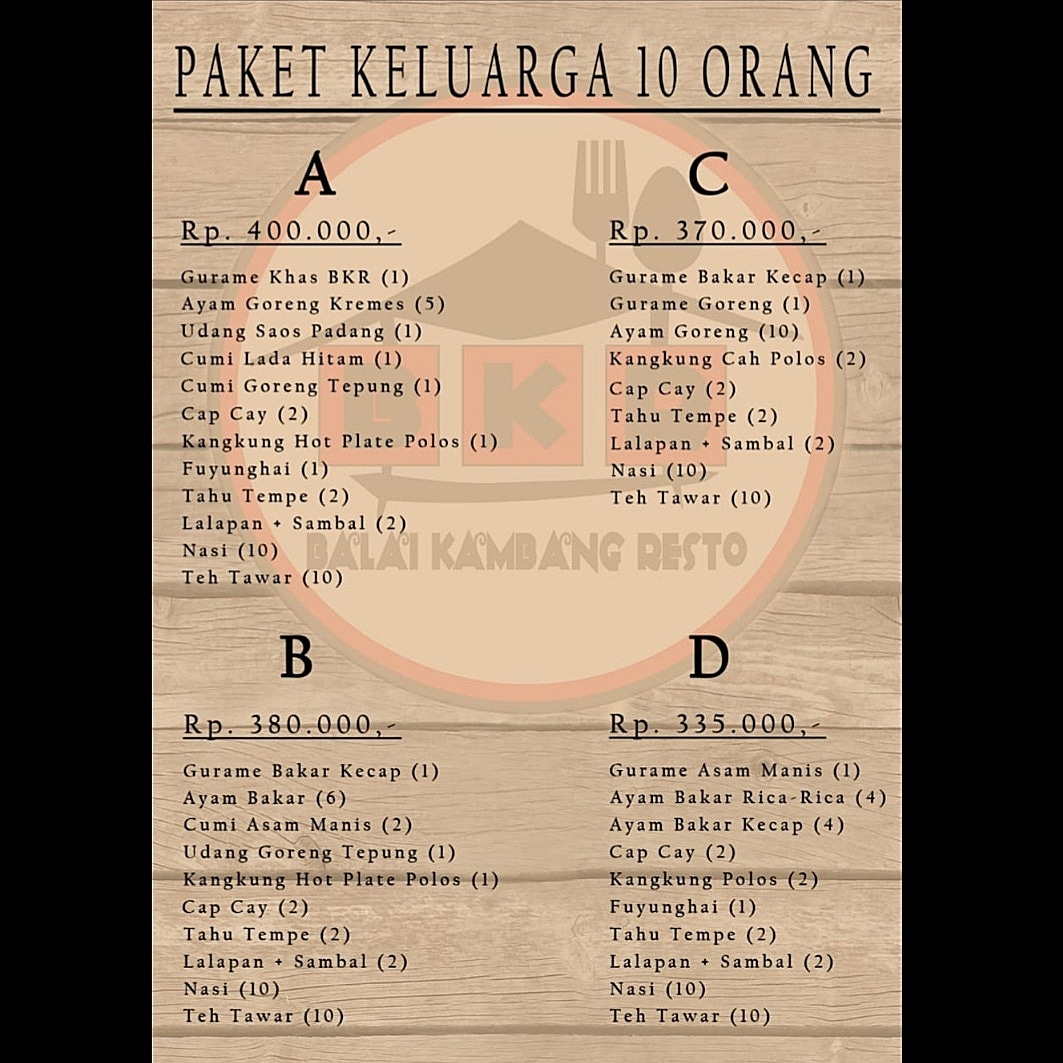 Balai Kambang Resto offers a delightful variety of dishes that showcase the best of Indonesian flavors, particularly focused on the iconic Gurame fish. One of the standout options is the Gurame khas BKR, a signature dish that’s perfect for those looking for a traditional taste. For those with a taste for something spicy, the Gurame asam pedas is a must-try, featuring a tangy and spicy profile that perfectly complements the tender fish. Another popular dish is the Gurame acar kuning, which presents the fish in a fragrant yellow turmeric sauce, offering a unique twist on this beloved protein. For soup lovers, the Sop Gurame provides a warm and hearty option, bringing out the rich, natural flavors of the fish in a savory broth. Finally, the Gurame bakar rica rica is a standout grilled dish, with the fish being perfectly charred and coated in a bold, spicy rica rica sauce that’s both fragrant and flavorful. Each of these dishes reflects the restaurant’s dedication to serving fresh, expertly prepared dishes that celebrate the rich culinary heritage of Indonesia. Whether you’re in the mood for something spicy, tangy, or savory, the menu at Balai Kambang Resto has something to satisfy every palate, all offered at reasonable prices.
